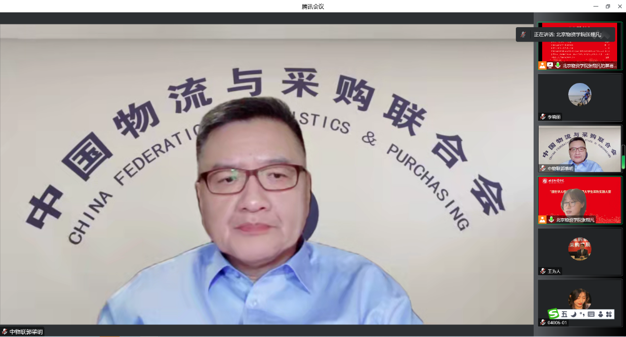 的精心组织、北京盛世华人供应链管理有限公司的鼎力支持表示感谢,对行业专家、企业专家、指导教师的辛苦付出表示致敬。郭肇明主任强调,全国大学生采购实践大赛一直秉承着创新驱动,无论是案例编写设计,还是细节的组织,实践与教学的结合等方面都做出创新,本次大赛质量也有了很大的提升。希望全国大学生采购实践大赛越办越好,大家共同努力继续促进产教融合不断深入。