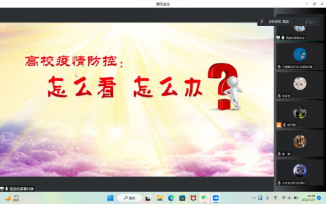 随后,各位党支部书记向同学们分析了高校疫情防控,为什么比社会面更严格。正因为高校与社会面其他场所相比具有人员高度密集、资源高度共享、交往高度重合等特殊性,一旦防疫失控,将会造成严重的传播扩散风险、巨大的人员、经费、物资的投入、严重危害在校师生的生命健康。所以,就要求高校校门管理不可松、核酸检测要坚持、疫苗防护效果好、网格管理可减损,早预防、早发现、早报告、早隔离、早治疗,可以科学有效止损,守护好校园师生安全。