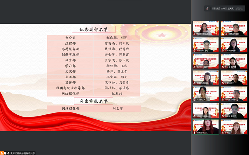 团委学生会在这一年中完成的各项任务,并强调同学们,作为一名新时代学生骨干,要时刻谨记自己的使命和责任,做好党的助手和后备军。与此同时,还鼓励学生骨干们能够继续努力,不断激励自己、完善自己,以更加昂扬饱满的姿态为学院的建设添砖加瓦、贡献青春力量。