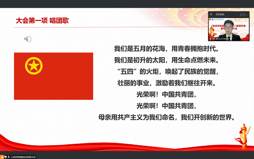 会议伊始,全体成员起立,庄严肃穆,奏唱团歌。