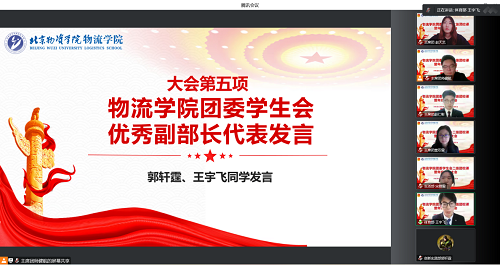 团委学生会优秀副部长代表发言。首先,郭轩霆同学介绍了自己在创新实践部的工作,认真发挥自己作为副部长的职责,并总结了本学期中自己学习和工作的不足,会以更加严格的标准要求自身,为部门和学院作出更多贡献。其次,王宇飞同学介绍了在担任学生会体育部副部长的这段时间中,学会了许多知识技能,提升了工作能力和态度,以高标准完成每项任务,并将以创新的态度和积极的工作状态继续为学院和学校贡献自己的一份力量。