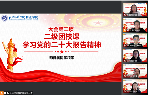 团委学生会轮值主席师健航同学领学党的二十大精神。师健航同学首先概论了二十大报告的内容,带同学们回顾了大会议程以及新时代十年的伟大变革,并强调了党的十八大以来,中国共产党勇于进行理论探索和创新,以新的视野深化对共产党的执政规律集中体现为习近平新时代中国特色社会主义思想,要将十九大以及十九届六中全会提出的思想长期坚持并不断丰富发展。