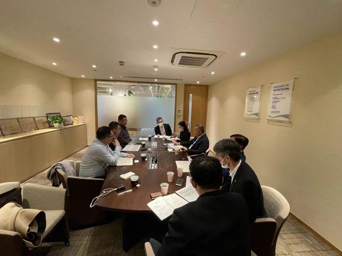 院长姜旭、副院长芮嘉明、党委副书记孙涛、对外合作办公室主任郭琳赴NX国际物流(中国)有限公司总部(以下简称“日通”)开展合作交流。日通公司总括松尾纯利、高级顾问杉山龙雄、东亚总部高级顾问赵经验、东亚事业支援本部总务部长野口史树、总务部HR中心所长钱明华,总务部HR中心川岛心参加了座谈交流。