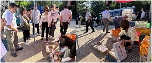师生,梯子峪村党支部书记等人热情地准备了当地特色水果——平谷大桃。禾硕嘉总经理陶硕为师生介绍了桃子的种植技术以及如何培育现代桃产业专业化、规模化、标准化生产,强调以生产优质的农产品为抓手,实现“好桃卖好价”。希望我们可以通过朋友圈、小红书等自媒体渠道对梯子峪村大桃给予宣传和支持,帮助梯子峪村大桃打开销路,实现村民增收致富。