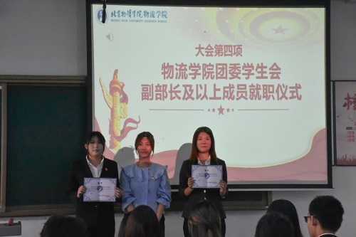 团委学生会副部长及以上成员就职仪式。由各部门部长为其部门代表颁发副部长聘书,李思奇老师为团委学生会部长及以上成员代表颁发聘书。