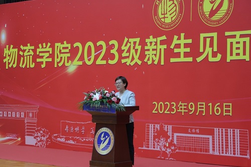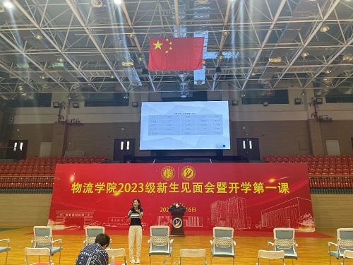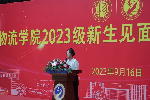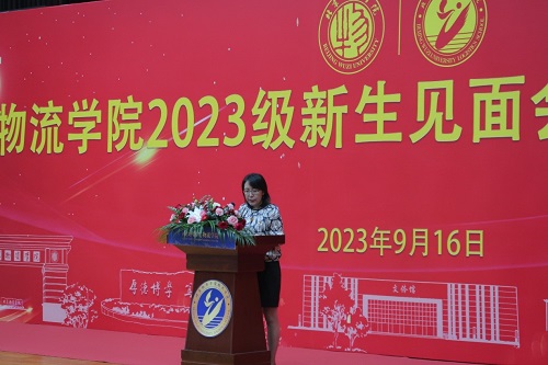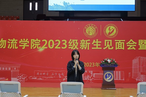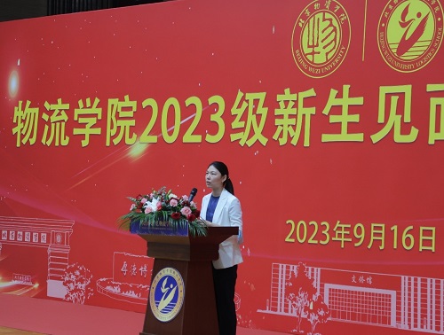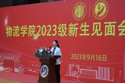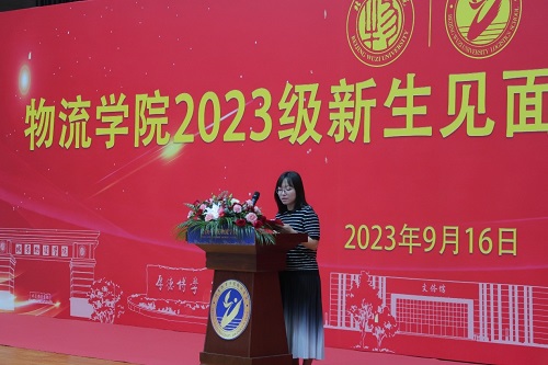 物流管理专业教研室主任段倩倩老师向新生们介绍了物流管理专业发展现状和近年来取得的成绩,详细地阐述了物流管理专业的课程设计及培养方式。