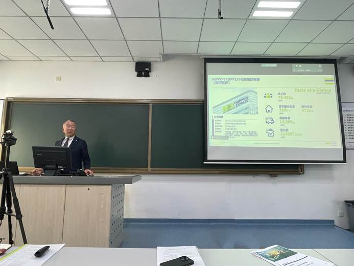 随后,松尾先生一行对物流专业的学生进行讲座。介绍了NX公司应对物流需求的解决方案,讲解了NX公司应对客户面临的问题、客户需求的变化、客户解决生产变化的具体措施,提供了NX公司国际物流专业知识和实践经验,并与同学们展开交流与互动,帮助同学们更好了解和掌握物流行业的发展动态和就业前景。