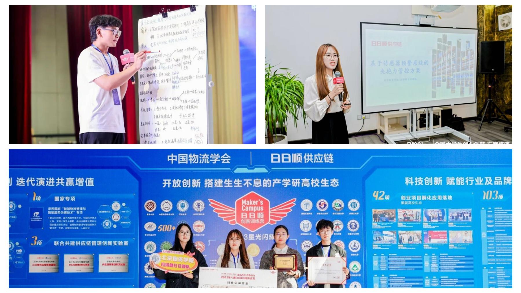 “日日顺创客训练营”由中国物流学会与日日顺供应链科技股份有限公司联合主办,是行业首个大学生社群交互的创业创新共创平台,迄今已成功举办8届。2023年4月,训练营入围全国普通高校创业创新类竞赛榜单,成为榜单22个赛项之一,在学界、行业的影响力持续增强。训练营精准模拟创业投资流程,设置种子集、天使学、A轮研、B轮创、C轮训以及IPO产六大环节,为大学生创客提供创新思维培育、创业方案孵化等全流程资源支持。此外,训练营还创新设置了“workshop头脑风暴”“角色扮演+PK赛”“创业大辩论”等互动形式,多角度深层次释放大学生创客的创新潜力,不断提升其方案设计、项目规划等实操能力。
