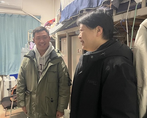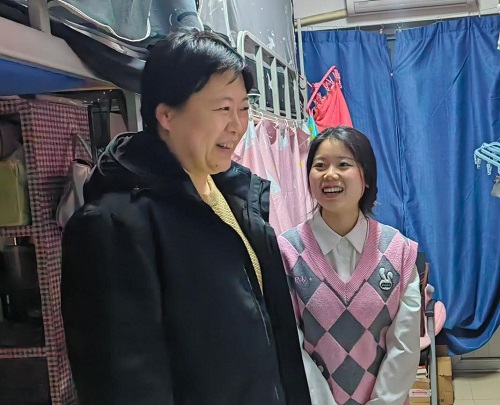 党委书记郝庆、党委副书记孙涛及辅导员李清月深入学生宿舍开展“迎新送暖”走访慰问活动,为同学们送上新年祝福及慰问大礼包。
