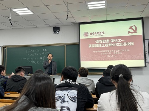 为充分发挥党员先锋模范与党支部战斗堡垒作用,引导学生更好规划大学生活,激发学生学习热情,2024年3月31日,质量管理工程专业教工党支部、学生党支部联合质管学社在二教401举办“雷锋教室”—质管校友进校园活动。本次活动由质量管理工程专业教工党支部支委邵舒羽老师主持,质量管理工程专业教工党支部书记王国义老师、学生党支部书记刘晨老师参加。本次活动邀请了质量管理工程专业张莎、刘砺伟、衣山水、苏阳、尹千辰五位校友。