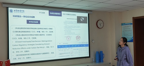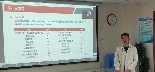 答辩过程中,研究生同学分别从学习成绩、科研竞赛获奖情况(科研获奖、科研成果转化、智库类成果、学术著作成果、标准成果、学术论文成果)、学生干部履职尽责情况、学科竞赛获奖情况、学院/学校贡献、社会实践情况、社会公益及志愿活动情况等方面进行了汇报。