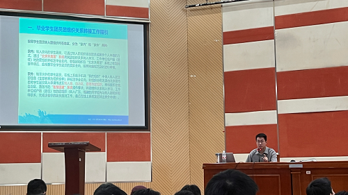 辅导员刘晨老师针对毕业生学籍档案填写规范等工作进行了详细解读,并强调了毕业生档案填写的完整性、规范性及重要性,要求全体毕业生认真对待、仔细填写。