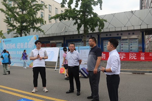党委书记郝庆、院长姜旭、副院长芮嘉明、副院长刘若阳、党委副书记孙涛均到现场一同热情迎接新生报到,现场指导材料收发、志愿服务、后勤保障等工作环节。面对来自五湖四海的新生们,学院领导与同学们亲切交谈,详询新生们对校园的第一印象、对大学生活的憧憬等等。