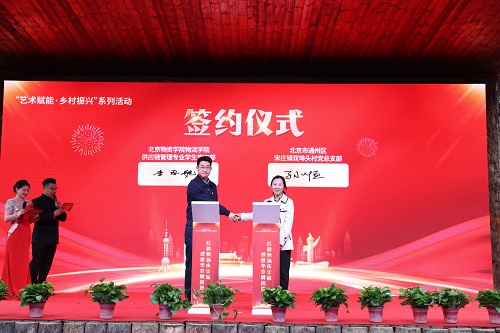 供应链管理专业学生党支部和通州区宋庄镇双埠头村党总支经过一年多的持续深入共建活动,在党建引领下的协同发展正在走深走实,他鼓励双方在已有成绩的基础上再接再厉。庞波强调,学校高度重视美育工作,多年来形成了一批亮眼成果,学校愿与地方发展相向而行,充分发挥双方固有优势,实现乡村文化传承、改善居民生活环境、丰富农民精神文化、促进乡村经济振兴的目标。引导学生在“大运河文化带”地标上好“大思政课”,在特色鲜明的“运河思政”实践育人体系下提升立德树人实效,为人才培养及乡村振兴贡献智慧力量。