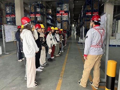 供应链管理专业师生一行来到金隅位于北京市平谷区马坊物流基地的物流园区,参观利用AGV、堆垛机、输送线等技术打造的科技化智慧仓。此次参观不仅让师生们体会了科技的魅力,也使他们认识了物流数智化转型带来的显著优势。