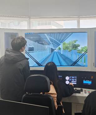 在虚拟仿真实验室,崔老师就铁路货运站到解集编发作业过程进行讲解,同学们就观看细节与老师们进行交流。在交流过程中,同学们实际体验了丰台西站的VR仿真模拟实验,对编组站建立了形象的认知。同学们还体验了地铁驾驶系统以及铁路信号仿真模拟沙盘,结合北京交通大学承担的多项国家研发计划课题成果,更加清晰地了解了国家铁路货运的发展前沿。