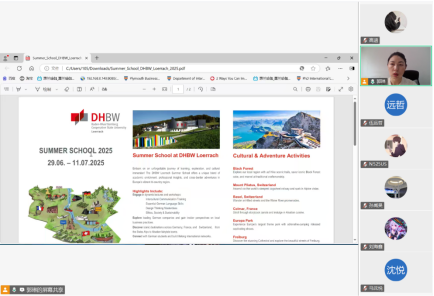 2025年3月7日中午,学院线上举办2025赴德国巴登符腾堡州立合作大学勒哈克校区暑期国际学校项目宣讲会。郭琳老师为同学们进行项目介绍并回答同学们关心的问题。