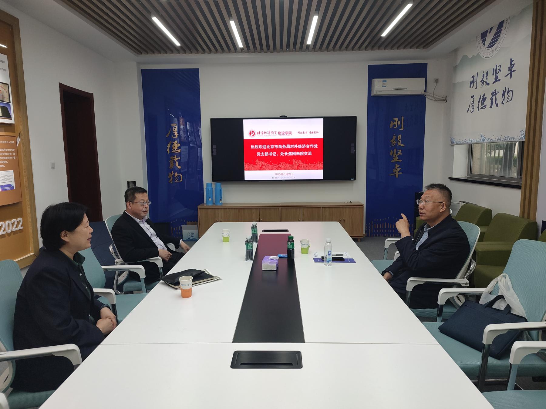 党委书记郝庆,党委副书记、院长姜旭,同来访的北京市商务局对外经济合作处党支部书记、处长焦刚进行了深入交流。