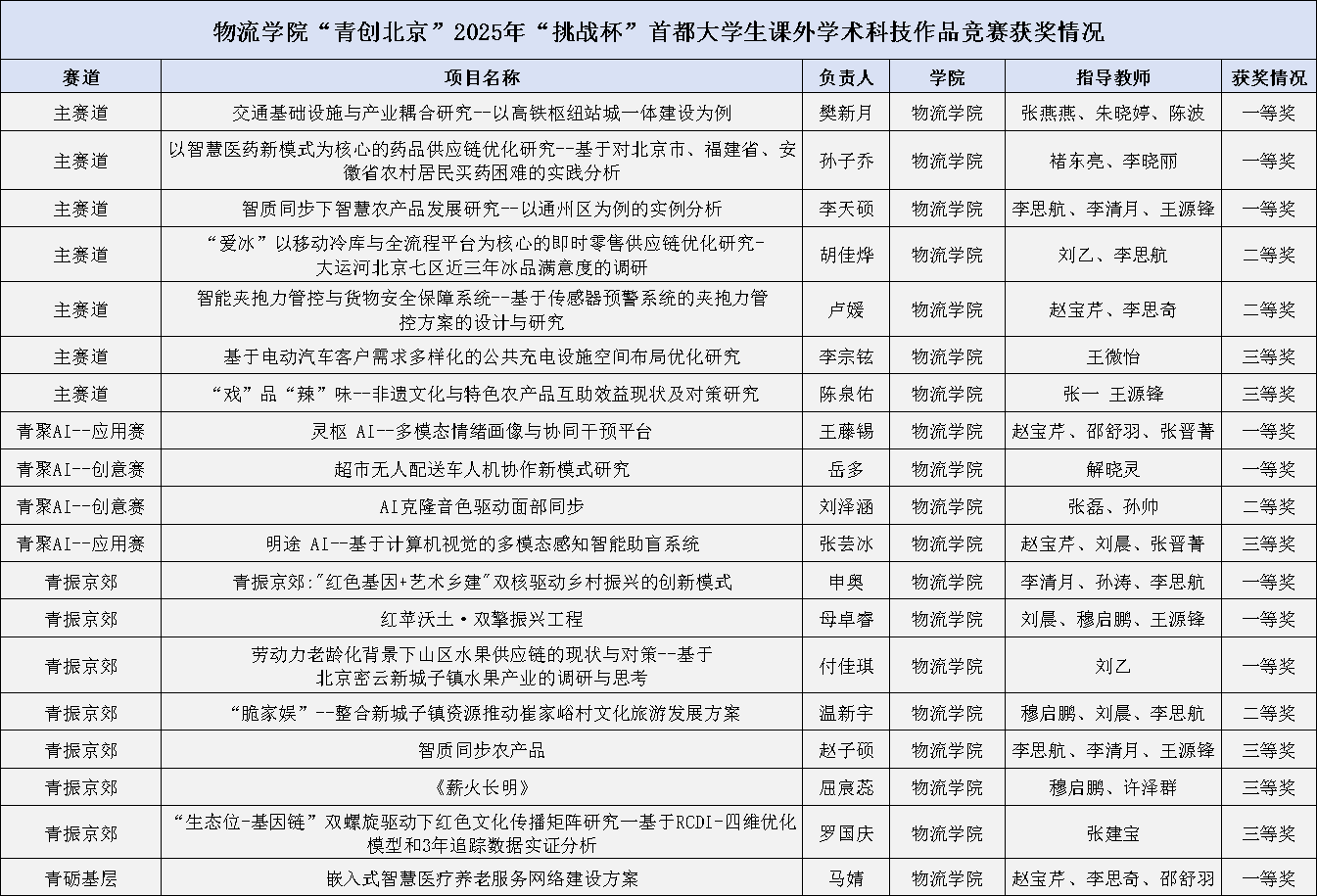 此次获奖的项目选题紧密围绕当下的社会热点与国家发展需求,聚焦于物流基础设施、智慧供应链、人工智能应用以及乡村振兴等诸多关键领域。这些选题不仅具有高度的现实针对性,更体现了同学们对社会发展趋势的敏锐洞察和对实际问题的深入思考。通过对物流与产业的耦合研究、药品供应链的优化探索、智慧农产品发展方案的制定以及无人配送新模式的尝试等,同学们在研究过程中积极运用专业知识,结合先进的技术手段,为解决实际问题提供了创新性的思路和方法。这些研究成果不仅有助于推动相关行业的进步,更展现出当代大学生在服务社会、推动创新方面的责任与担当。