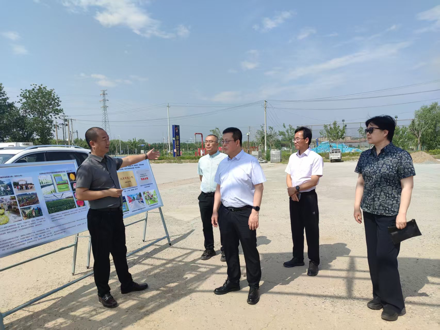 一行通过马驹桥镇联营公司总经理刘小港 、副总经理郭晓然的详细介绍,深入了解了科技小院集群的建设发展历程和产学研融合的情况。随后,参观调研了智能温室大棚、冷链仓库、神驹大地美术馆及科技小院工作及生活配套设施,详细了解了西兰苔、皱叶菜等新品种的种植、市场需求等情况,农作物种植、品种培育、技术推广等方面的工作进展,实地了解了物流仓储、冷链库的建设与使用现状,艺术赋能乡村振兴的样板建设情况,以及驻村学生工作、生活及阶段性科研成果。