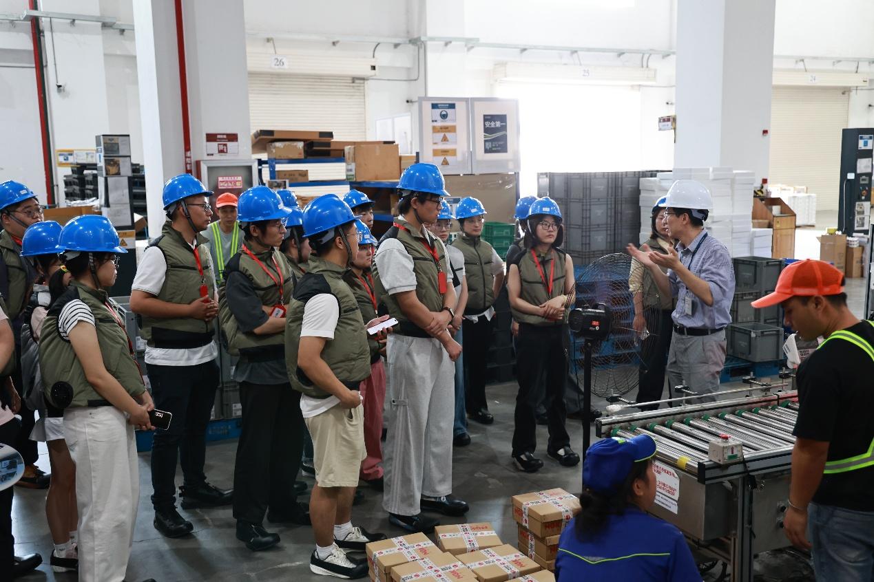随后,进入仓库实地参观学习环节。师生赴港城路自动化仓库和青浦智能仓储中心,观摩AGV机器人分拣、WMS系统调度等实操场景。技术负责人现场演示了"无人化仓储"作业流程,沉浸式学习让学生对库存盘点、路径优化等有了全新理解。