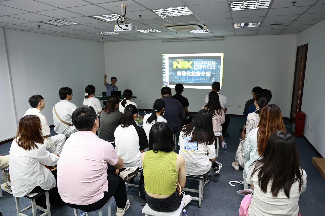 师生首先到达NX国际物流东亚总部,事业支援本部长野口史樹表示热烈欢迎,业务部门负责人介绍了公司的发展历程、业务形态、战略布局、数智化发展方向、国际化人才需求等,并就师生关心的问题进行交流。
