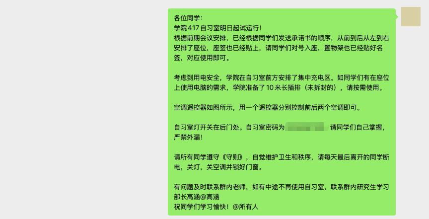 为维护自习室秩序,学生工作办公室联合学生一同制定了《绿帽小说