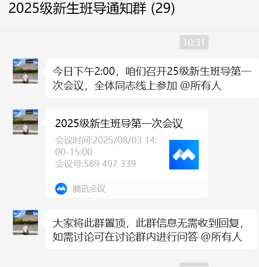 会议特别对迎新工作流程进行了精细化安排。要求各专业学长组建立规范化工作群组,确保信息传递的准确性和时效性;完善问题反馈机制,做到“日清日结”;注重工作留痕,建立完整的工作档案。通过标准化、流程化的管理,确保迎新工作有序推进。