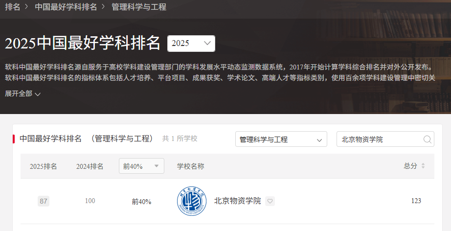 管理科学与工程以123分的成绩,跻身全国上榜高校的前40%,跃居全国第87位,首次迈入前100的行列。“软科中国最好学科排名”,对全国所有拥有相关学位点的高校进行遴选,仅发布前50%的顶尖学科。