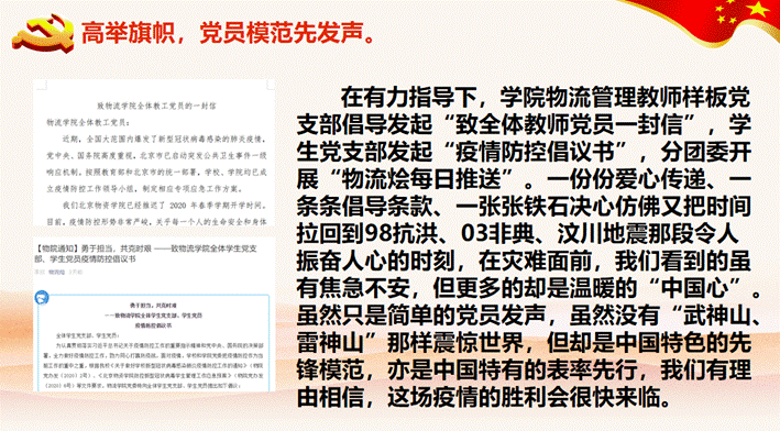 党委在这张“网”中也许仅仅是一个“节”,但从起初的防控指挥、精准部署到上情下达、建立机制、堵点防控,俨然把这个“节”系得紧紧地、牢牢地,为全国防疫工作做出了应有的贡献。