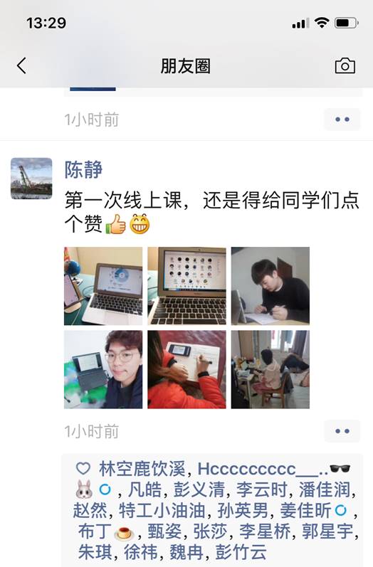 刘若阳(教师):“新冠疫情的影响使得在线课堂成为一个热点,促使大学线下课堂向线上课堂的一个大跨越,前期因为技术等问题带来的教学模式改革使得我们老师备课有较大的压力,尝试了多种教学技术和方法,而当今天看到在线课堂上同学们积极响应、反馈和互动时,觉得一切的准备都很值得!”