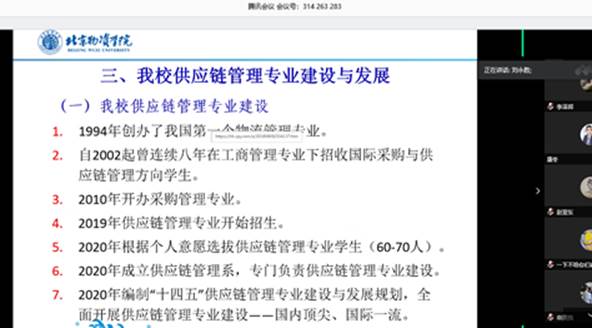 利用腾讯会议,邀请刘永胜副校长,以《供应链管理专业建设与发展》为主题,举行了“供应链管理专业”2019级物流管理与工程类学生宣讲会。供应链管理专业老师、以及50余名2019级物流管理与工程类大一学生聆听了本次讲座。