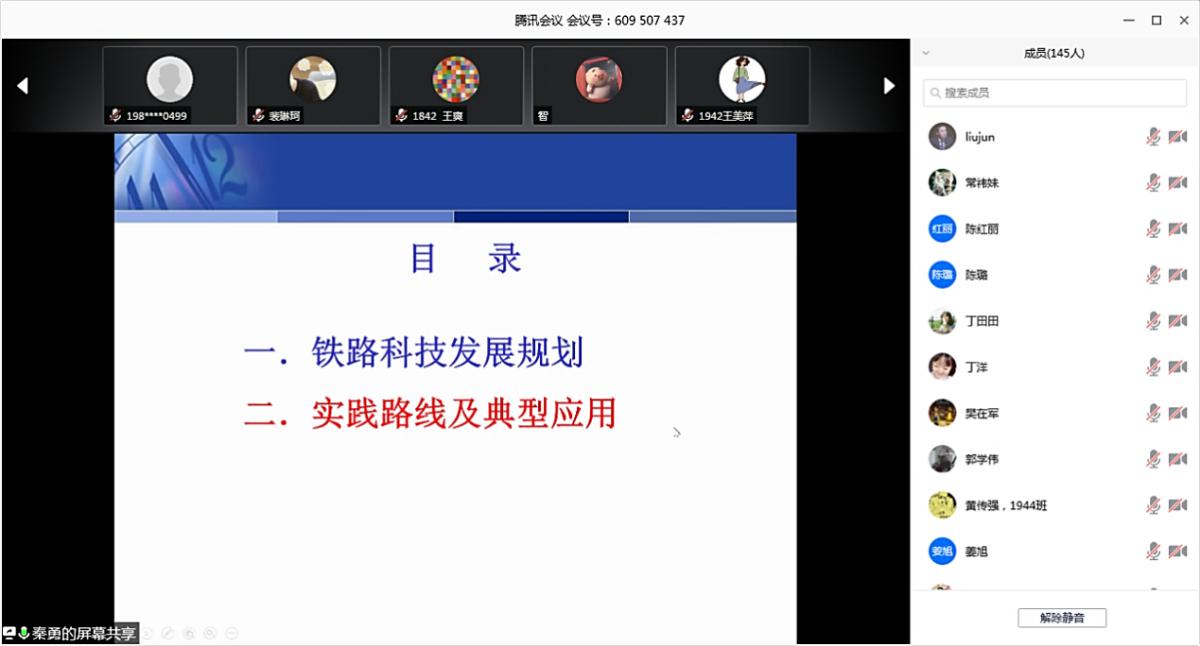 2020年4月29日下午14:00,以腾讯会议的方式,举办了线上“物流名家讲堂”(春)系列第一讲,主题为《铁路科技创新中长期发展规划与实践》的讲座。