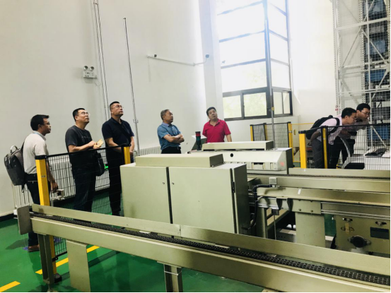首先,赵立强副教授对河北廊坊中油管道物资装备有限公司一行六人的到来表示欢迎,随后国家级物流示范中心工作人员为参观领导演示了一层六大设备,包括提升单元、料箱式立库系统、托盘式立库+循环搬运系统、多穿系统等,陪同参观了各大专业实验室,包括云采购实验室、VR/AR实验室、智慧供应链协同创新实验室等。中油管道物资装备有限公司一行六人对国家级物流示范中心的建设与运行表示赞赏。