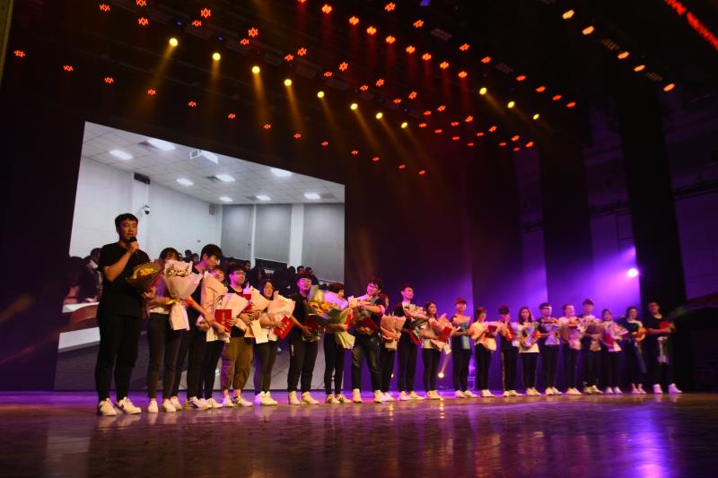 党委副书记毛文富为学生会颁发证书。班导和团委学生会干部们对一年的工作进行了总结,同学们纷纷冲上舞台,为他们送上鲜花和礼物,合影留念,感谢这一年班导及团委学生会的付出与关爱。