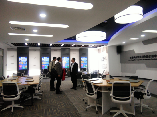 院长姜旭对国家级物流示范中心进行了简单的介绍之后,对示范中心内的一层多穿系统、托盘式立库+循环搬运系统、流利式分拣系统、提升单元以及三层的智慧供应链协同创新实验室、冷链实验室和VR/AR等实验室的具体功能、以及未来使用规划进行了详细解说。同行人员对VR/AR实验室的实验进行了体验,表示赞赏,很感兴趣。