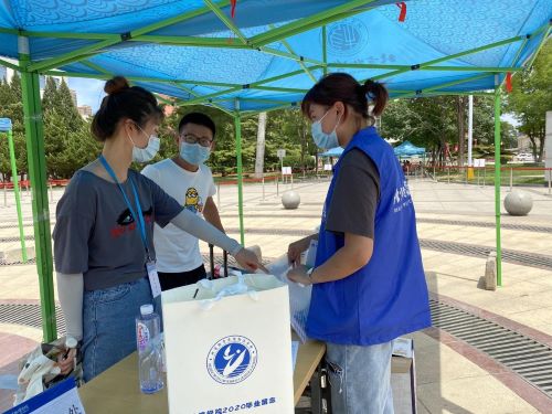 返校手续办理点,老师与志愿者们耐心细致的为毕业生答疑解惑、办理手续、收发资料、搬运行李,贴心地送上印有班级合照的纪念T恤、学士服等毕业礼物,同时按需送上各类防护物资。学院留念背景合影点,研究生们纷纷合影留念,留下这值得留念、意义非凡、牵挂三年的线,留下这与众不同、回味无穷、受益一生的人生起点。