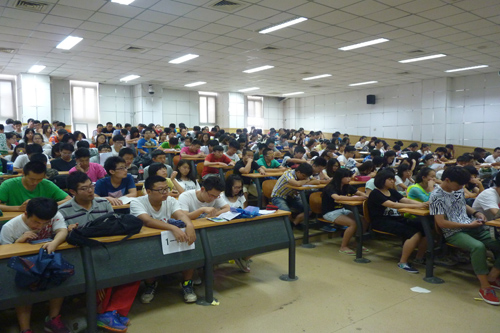 随后,孙涛老师就13级学生即将在2014年6月29日-7月12日在北京市平北学生军训基地(延庆县八达岭镇)进行的集中军事训练做了安排说明。第一,6月23-28日开展军事理论课程,28日下午理论考试;第二,提醒同学们军训时要备齐个人日常用品;第三,军训非常辛苦,同学们要做好充分的思想准备;第四,孙涛老师简单说明了军训期间的作息安排表;第五,强调了军训期间的安全问题;第六,军训期间将举行丰富多彩的活动,例如,军事定向越野运动比赛、野外徒步拉练、拔河比赛、爬长城等。总之,军训严格艰苦,同学们要做好身体和心理各方面的准备。