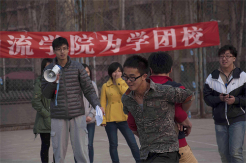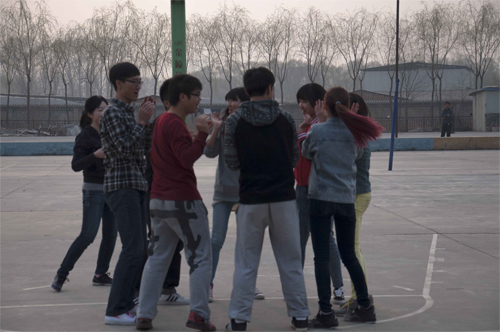 团委学生会副部级以上学生干部开展。 活动伊始,众人手拉手围成一圈做热身活动“爱的抱抱”。随后分成四组迎接第一项活动“地雷阵”。游戏场地异常喧闹无疑使穿越地雷阵的选手无所适从,难以分辨指令出处进而影响自己的动作。最终小组成员依靠信任跨越雷阵,拉近彼此。