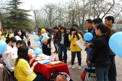 18名志愿者在志愿服务部人员带领下到达位于西海子公园内部的关爱自闭症签名活动现场。每年的4月2日定为“世界自闭症日”,以提高人们对自闭症和相关研究与诊断以及自闭症患者的关注。在这个特殊的日子里绿帽小说