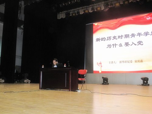 党总支副书记毛文富老师主持,主讲人为新华社纪委宋庆森老师,参加此次党课的还有年级辅导员王淑焕老师和孙涛老师。