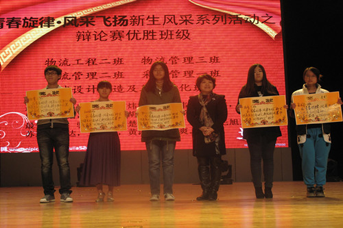 本次晚会还为新生篮球赛、新生辩论赛、巅峰达人秀等比赛的获胜班级和个人以及最佳辩导颁发了奖状,同时回顾了一路走来的点点滴滴。在本次新生系列活动中,物管三班获得总名次的第一名,机械和物流工程一班获得第二名,商品二班、物管二班和采购一班获得第三名。