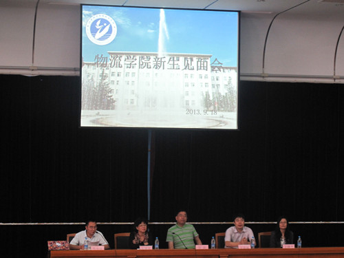 毛老师首先向各位同学介绍了各教研室主任:物流管理教研室主任刘俐老师、教务处副处长兼物流工程教研室主任梁晨老师、机械教研室主任孙卫华老师、采购管理教研室主任宋玉卿老师、商品质量检验与管理教研室主任陈红丽老师。以及与同学们的学习生活密切相关的几位老师:教学秘书王红江老师、团委书记何佳赢老师、辅导员吕亚鹏老师、鲁楠老师、孙涛老师、以及各班班主任。13级全体学生参加了此次见面会。