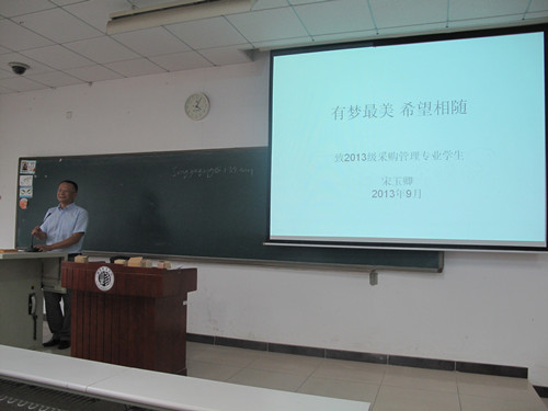 传统特色;同时该专业建设又充分借鉴了世贸中心、美国采购协会、英国特许采购供应协会以及欧洲采购高等教育的知识体系。该专业建设既继承了我国传统物资管理的优秀成果,又引入了国际前沿的理论与实践。国际采购与供应链管理专业主任宋玉卿老师以“有梦最美,希望相随”为主题向大家介绍了该专业的培养目标、就业前景等基本情况,并向新生们传达了自己的期许,希望他们以后能在学校的指引下走好人生路。