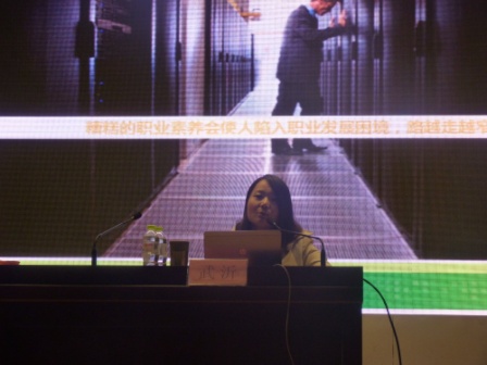 在大礼堂开展了“职业素养与职业价值观培养”新生教育活动。来自意优创意的武沂老师作为主讲老师主持了本次培训会,12级年级辅导员鲁楠老师参加了本次活动。