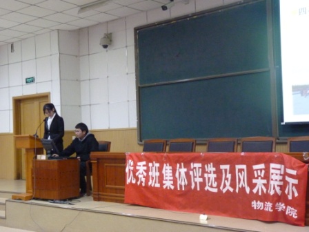 此次活动共有八个班级进行了展示,分别是10级物流工程二班、采购管理一班,11级物流工程一班、商品学一班、商品学二班、采购管理一班,采购管理二班和机械班。首先,每个班的代表对班级风貌及建设情况进行了展示。各班展示者从学风建设、班级活动等各个方面进行了详细的展示,精美的PPT和视频展现了每个班级的良好风貌,在回顾班级上一学年学业上争优、活动创新同时还展开了对未来班级建设的创想。