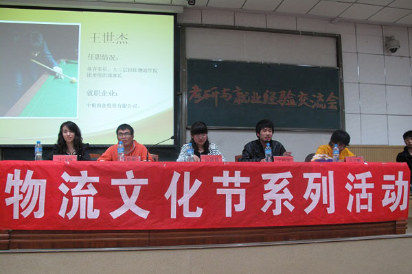 在二教一号报告厅举行“中都杯”第四届物流文化节系列活动之“考研与就业经验交流会”。本次交流会分别邀请本校在读硕士研究生赵晨晨,今年考取硕士研究生的08级毕业生王琦、束晨辉,08级应届毕业生吕文鹏、王世杰同学作为嘉宾,与同学们分享考研、就业的经验。绿帽小说