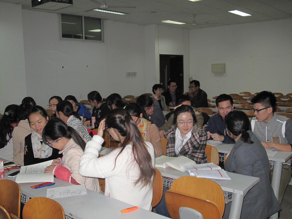 第二项活动是共同学习探讨社会主义核心价值观。从社会主义核心价值观的三个层面出发,对个人学习、工作和生活进行讨论。分组讨论之际,党员学生积极参与讨论。发言代表从自己的经历出发,进而谈及对社会,对学校各种现象的看法,与其他党员做了深层次的思想交流。