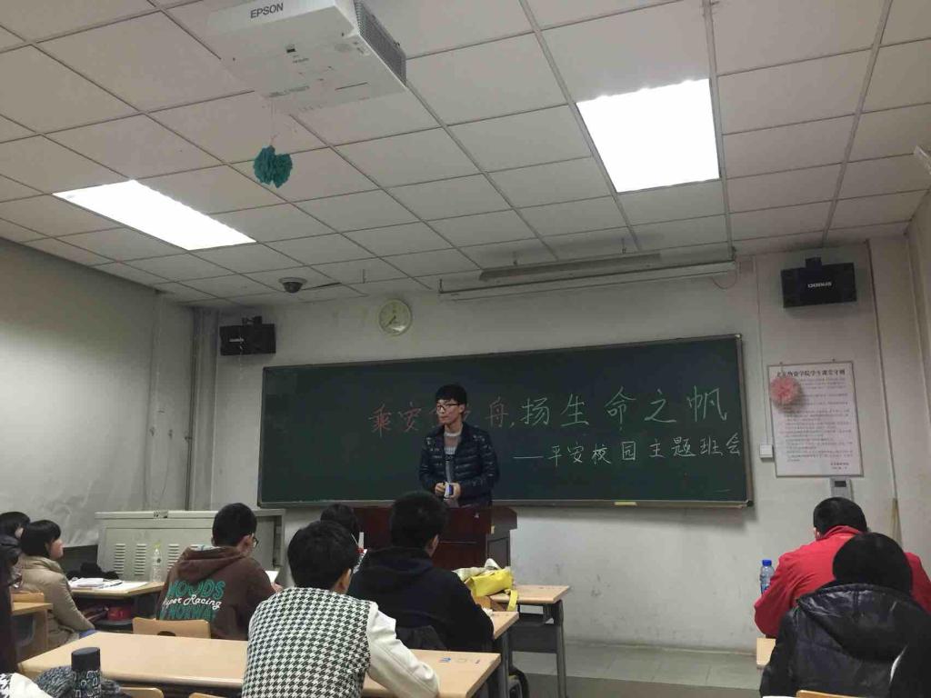 12月14日晚,何佳赢老师组织新生班长、团支书在二教一报召开会议,按班级分发《“平安校院”创建工作基本常识》手册,部署各班进行安全教育主题班会,并要求班主任参加,重点针对“平安校园”建设、寒假学生安全、考风考纪等内容进行教育。