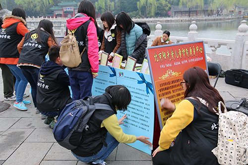 志愿服务部成员的组织下,12名志愿者于4月2日早上七点在大礼堂前集合,前往北海公园参加阳光爱第七届4.2自闭症日宣传活动。